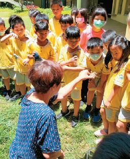 184 新竹夢想之地HSINCHU CITY, THE WONDERFUL LAND 關埔國小 a.關埔國小是「新校園運動」計畫的典範學校之一。( 楊智仁攝 ) b.活潑的校園寫照。 ( 關埔國小提供 ) a 創意 非典型校園
