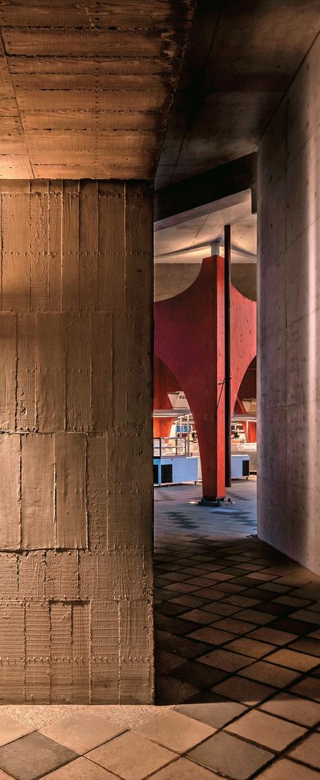 165 SCENE III 微笑水岸 讓地、讓道、克己與共享 「概念做法儘量清楚簡單,不要有過多個人執 念,更不需炫技。」建築採用SRC波浪頂棚、 CLT拱弦牆體、圖案式的地磚景觀鋪面等大面 積、大尺度的單一材料展現明朗大器,細部設計 刻意收斂精簡,讓建築量體雖然巨大卻不笨重, 甚至產生奇特輕盈的意象。大棚架下的攤商設施 高度整合,統一規格框架,擺脫長期以來招牌、 形狀各異的雜亂形象,水、電、照明、瓦斯、消 防、排水等設施設備直接裸露,採用單一的不鏽 鋼材料與系統構件,粗獷、清爽、俐落的工業 風,呼應主體建築的鮮明風格。 波光市集完成後, 真的是畫龍點睛, 讓新竹漁港整個亮了起來。 ――景觀建築師 郭中端 a.廁所與機房也使用規律統一的視覺來收納。。b. 建物設計 引進自然天光。 ( a-b.嶼山工房提供:丰宇影像攝 ) b