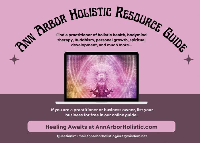 Yoga for Healers: Trauma Informed Somatic Yoga with Leslie Pertz • Sunday, March 1, 8, 15, 22, & 29, April 5, 12, & 26 • 10 to 11:00 a.m. • Gentle yoga for anyone who is a healer—a person who works in the world of mental/ healthcare. Come rest your weary heart. Pay what you can. For more information contact Leslie at (734) 926-8590, email peachtreeyogami@gmail.com, or visit peachtreewellnessmi.com.