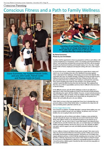 Imprinting a fit and healthy lifestyle on our kids may or may not change what happens at the dinner table each night (I’m here to tell you), but it will help affect their outlook as they grow. By Elaine Economou Photos by Joni Strickfaden Recently, I had the opportunity to share my perspectives on fitness and wellness with a group of employees at a local factory where I was teaching some functional fitness classes. I had a great time and think that everyone had a bit of fun with my program of head to toe functional stretching and strength training. Over a few days, I taught all three shifts of factory employees and enjoyed working with such a wide range of people.