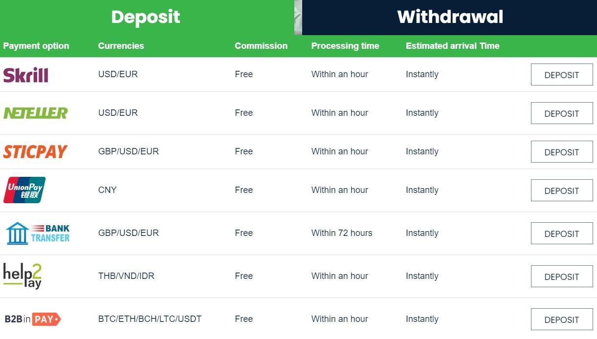 The first deposit with a new card/e-wallet will be manually reviewed and the fund will be credited immediately after the review is successful. Every subsequent deposit made with one of the verified methods will be credited instantly to your trading account. Commission CWG Markets does not charge any fees/commissions on deposits/withdrawals. However, you may be charged by the International Bank involved in the transfer. The client shall bear the costs.