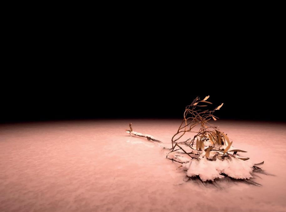 LAKE CROSBIE, VIC Darkness rolls over Lake Crosby adding an eerie element to the smooth pink salt. All that falls on the lake is slowly preserved as the wind-driven tide ebbs and flows, leaving a little more salt every time. Objects mar the lake’s alien texture and the lake mars them in return.