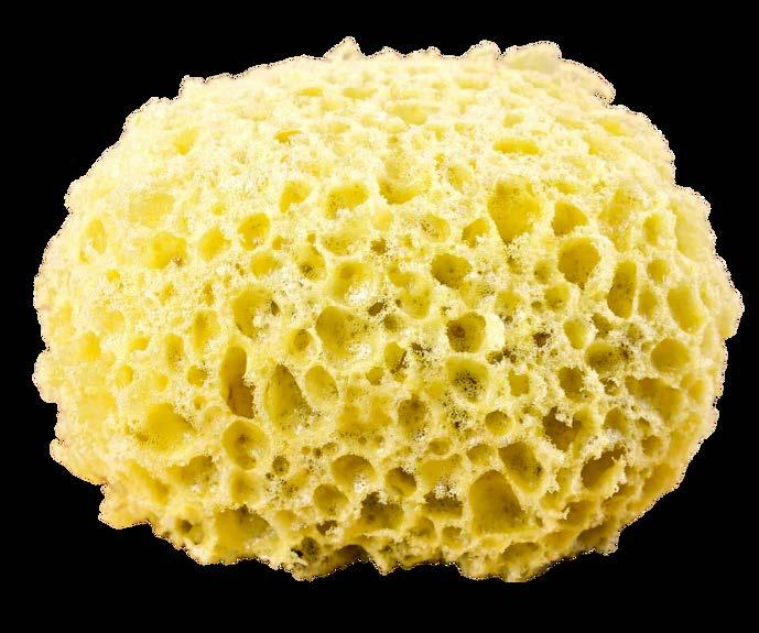 Conventional sponges are made from synthetic materials like polyester and plastic.