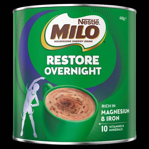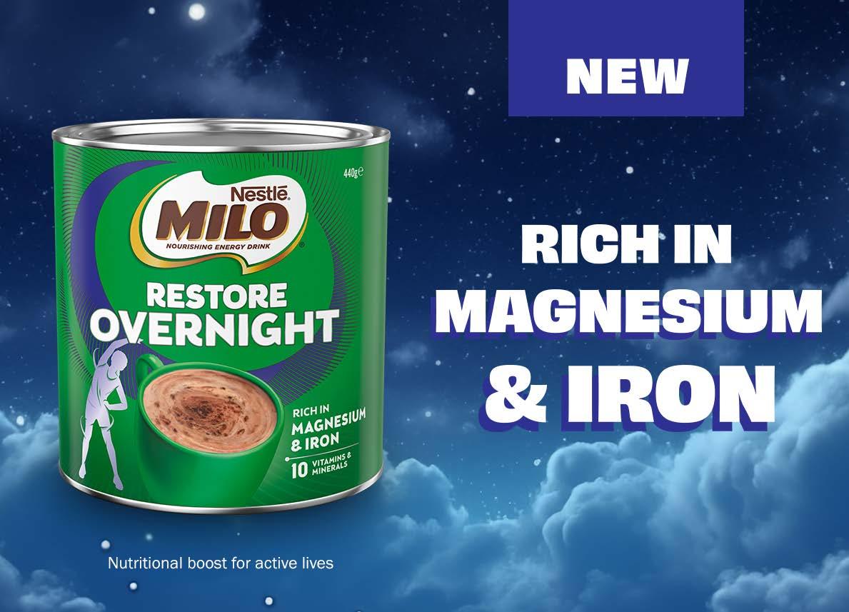 Rich in magnesium and iron, NEW MILO Restore Overnight helps restore energy and replenish nutrients so you can be at your best the next day! Enjoy hot and at night-time. Available in 440g pack size.