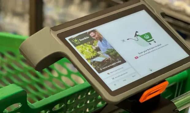 DIGITAL DISPLAY: An interactive screen provides real-time updates on selected items, allowing shoppers to monitor their spending and view in-store promotions.