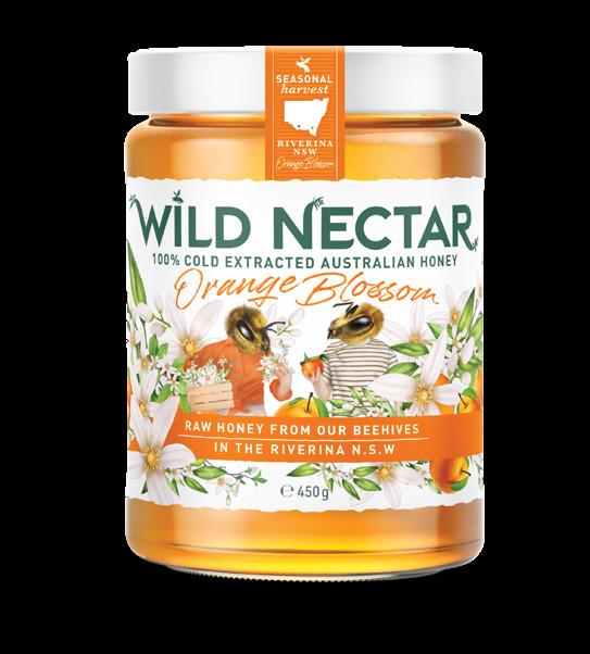 Springtime in the orange orchards of the Riverina, NSW means Wild Nectar Orange Blossom Honey is being made by our bees as they busily feed and pollinate the delicately fragrant flowers of the citrus trees. Raw and cold extracted to maintain the honey's natural clear, fresh aroma and delicate, zesty taste.