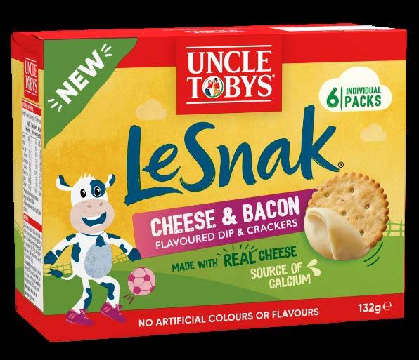 Enjoy every cheesy moment with UNCLE TOBYS Le Snak Cheese & Bacon! Combining smokey bacon flavour with real cheese and crunchy crackers, it's a tasty snack with no artificial colours or flavours. Perfect for lunch boxes or on-the-go.
