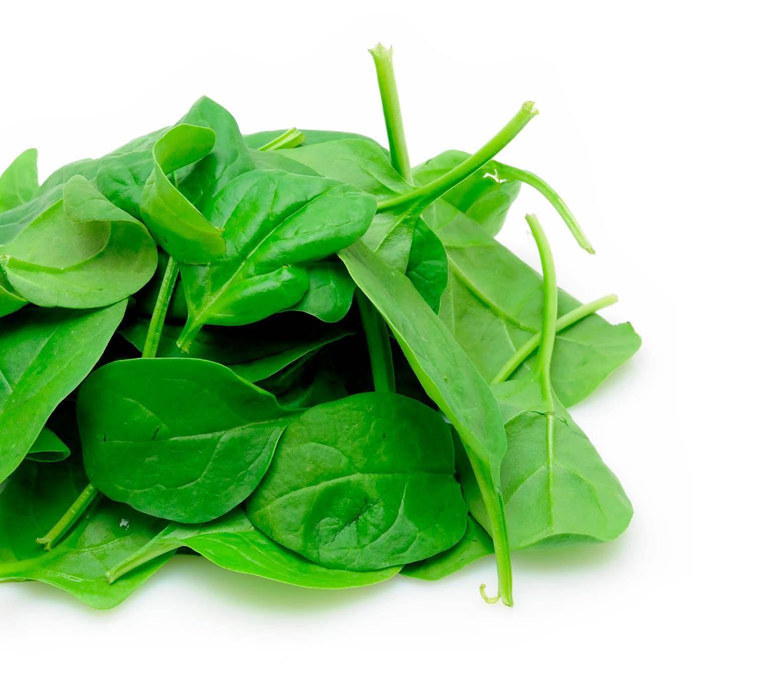 Spinach is a versatile leafy green, used in almost all cuisines. Mature and baby leaf types are available. Spinach contains a lot of lutein, which is linked with eye health. Cooking spinach makes some nutrients more easily absorbed by your body but be careful not to overcook it—steaming is best. Raw is great in sangers and salads.
