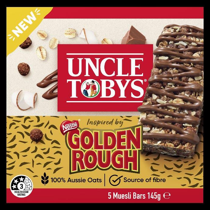 UNCLE TOBYS found its match with CHOKITO! These muesli bars take snacking to a whole new level with 100% Aussie oats, chewy CHOKITO fudge pieces, choc balls, and smooth milk choc. Also available in GOLDEN ROUGH & CRUNCH.