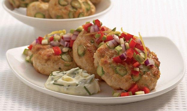 Asparagus adds both flavour and colour to ever-popular burgers. When cooking, be sure to make enough for tomorrow’s lunchbox. For a vegetarian version, replace the chicken with minced marinated tofu.