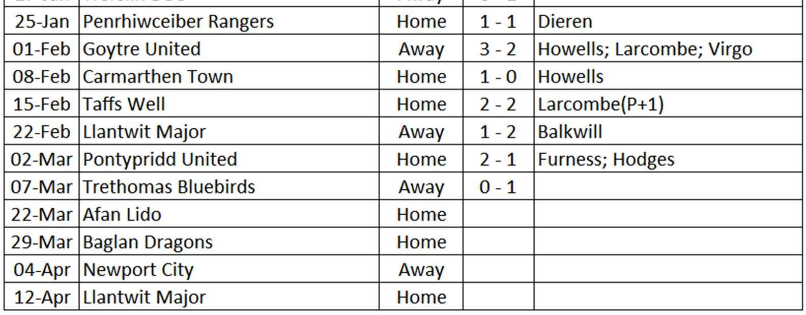 DylanDinham:defender;age21.JoinedbeforeChristmasfromPontypriddUnited.Former clubs:Ammanford,Panteg,Risca,Aberbargoed,MerthyrTydfil,Abergavenny,Treharris Western.