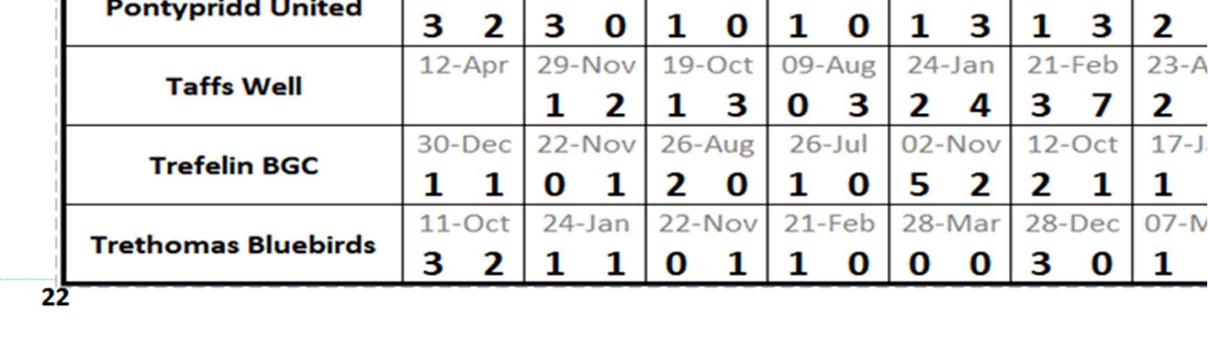 straightwins.Theclubalsoreachedthequarter finalsoftheWelshCup,goingdown2-1aera bravefightathometoWPLsidePortTalbot. JoshBullwastheWelshLeague’stopscorer with32leaguegoals.