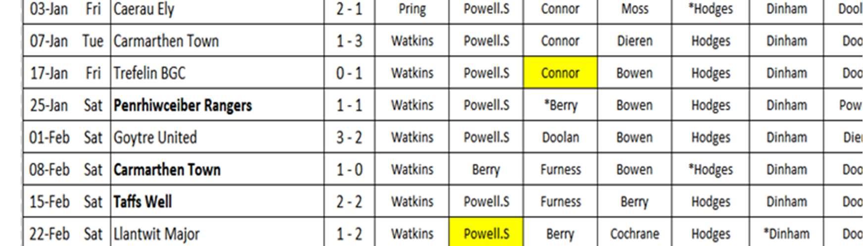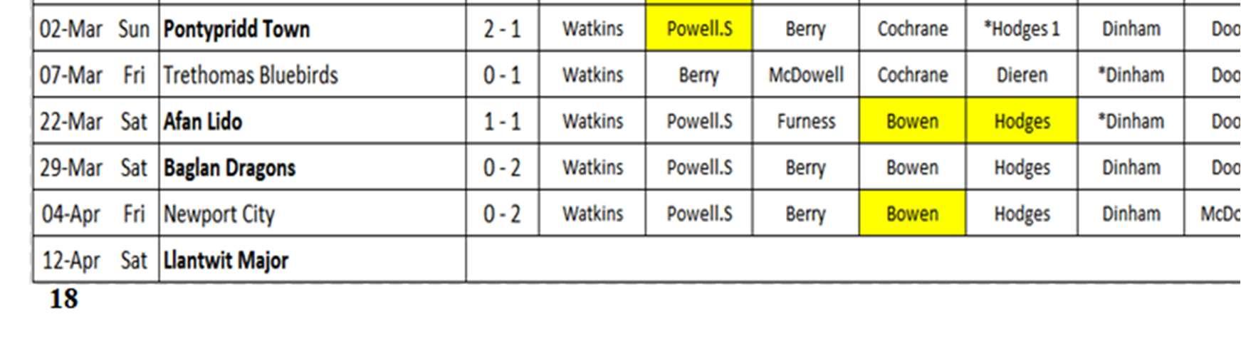 TommyChallenger:midfield;age18.Joinedthisseasonintransferwindow.Formerclubs: PontypriddUnited,Cambrian,RiscaUnited,CascadeYC.Debut:Feb25,GoytreUnited.