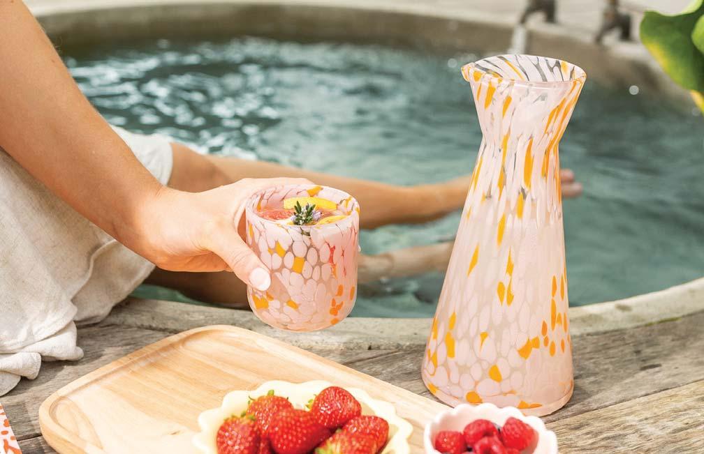 We are taking the time to detox, breathe and declutter, while reaping the rewards of restorative moments that we have carved out for ourselves as being “offline” becomes a part of our habitual routine. We are reminded of the need for self-care and wellness and look to the bedroom as a place of sanctuary. This season is a mix of airy and light colour tones combined with deep, dark fluid shapes representing movement in the ocean, sky, and coastline. We are inspired by translucent and gloss glazes, recycled glass and natural pale wood. Graphic topographic lines, blobby spots and plaids are also catching our eye. Shapes and edges are rounded with soft curves evoking a feeling reminiscent of ocean waves, cloud formations and the movement of bubbles. Deep-sea inspired designs are key, and we see plankton, algae and seaweed influence print and pattern along with the warmth of the rocks along the coastline morphing into marbled, layered effects.