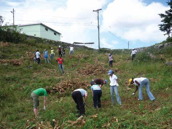 Participants of Young Adults in Mission (YAM), a joint programme between CWM & CANACOM, clearing the land for planting at Mount Olivet Boys Home in Jamaica, 2009.
