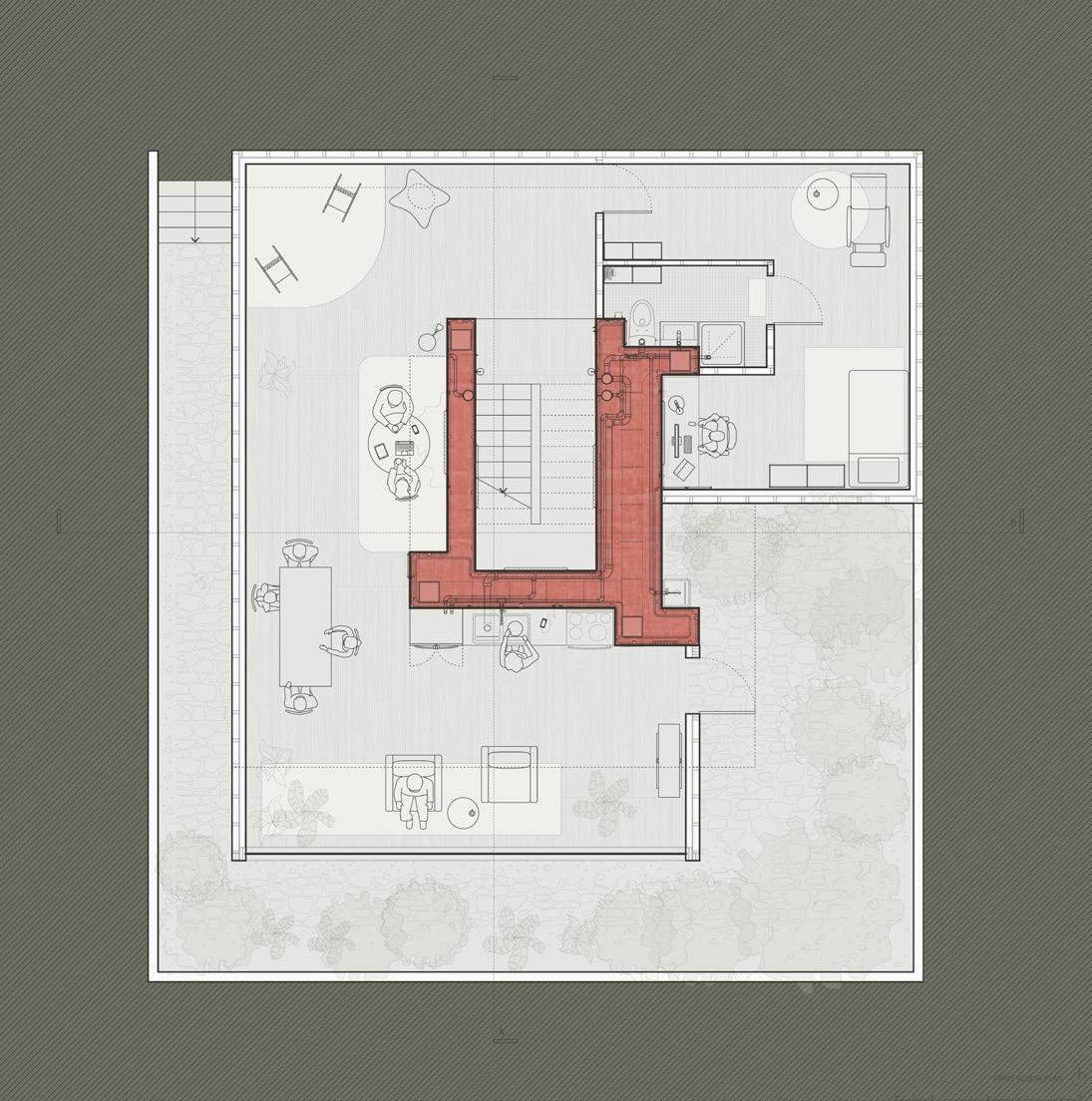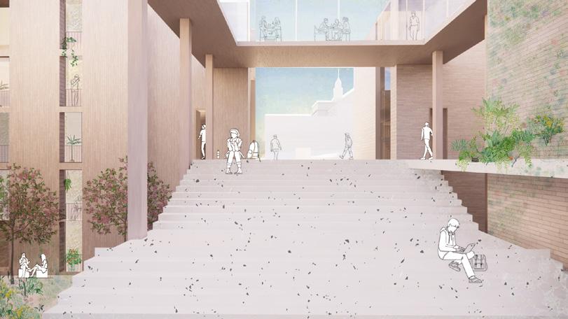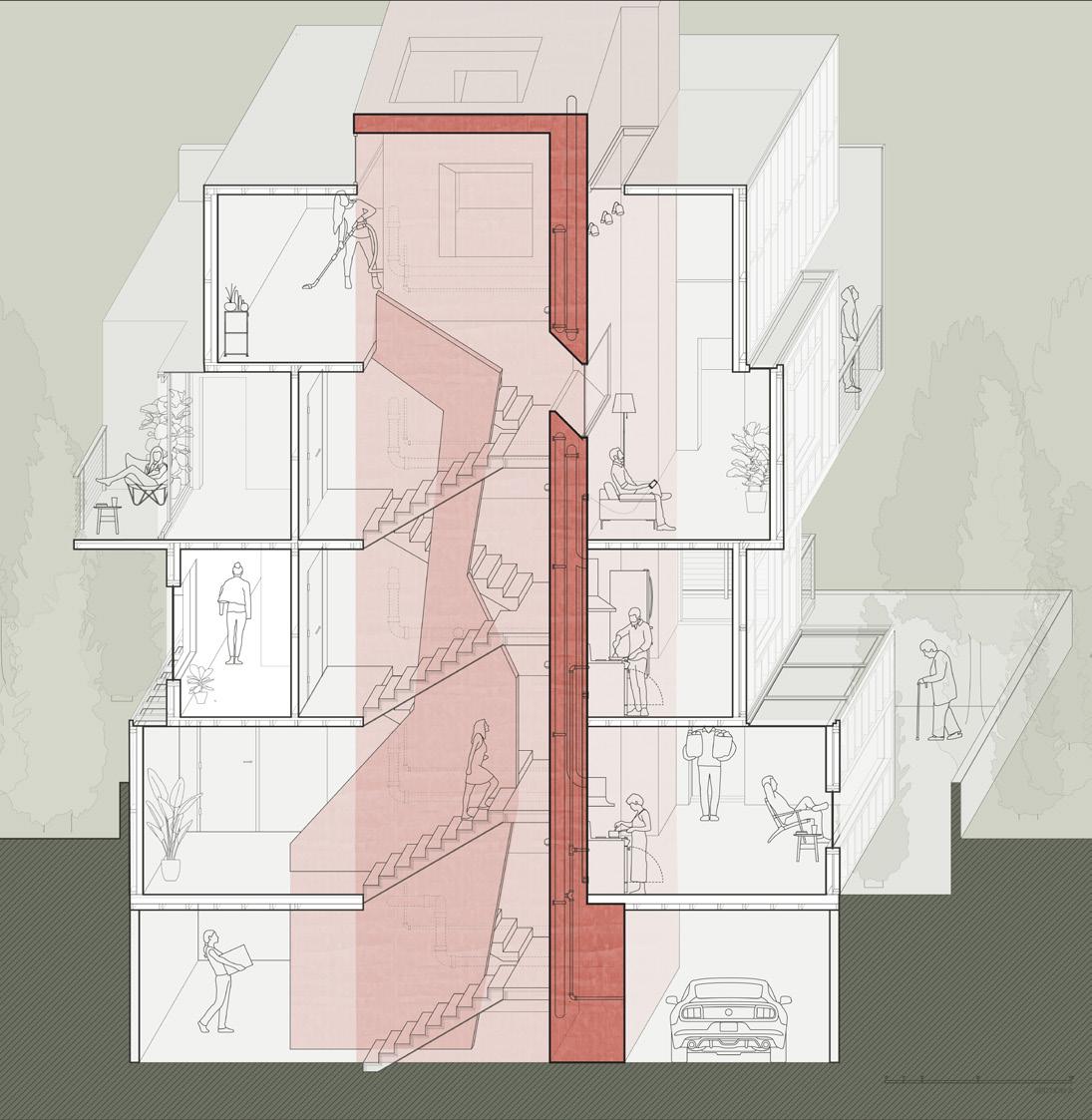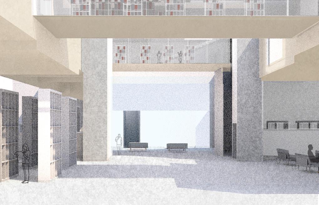 Considering these three design tasks as a newly built “campus” which will have an integrated networking and circulation system between them, the residential building has a public concourse, moving people up in order to encounter the different urban characteristics and settings of Lisbon – the Tagus river and the hillside topography.