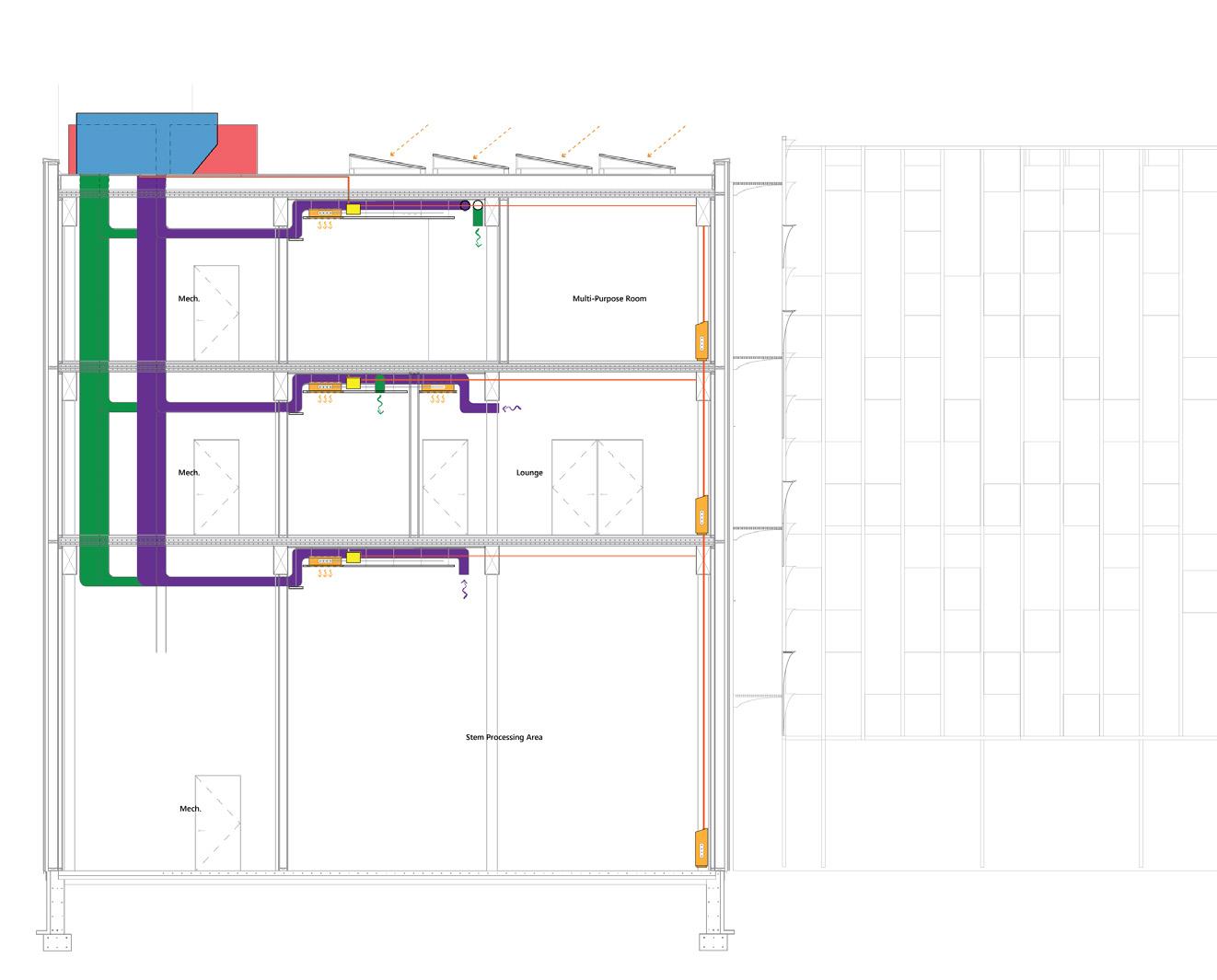 This project really delved into detailed facade building structure and overall building systems, including HVAC, VRF, ERV. Moreover, it aims to design a new community hub with an activity of growing plants.