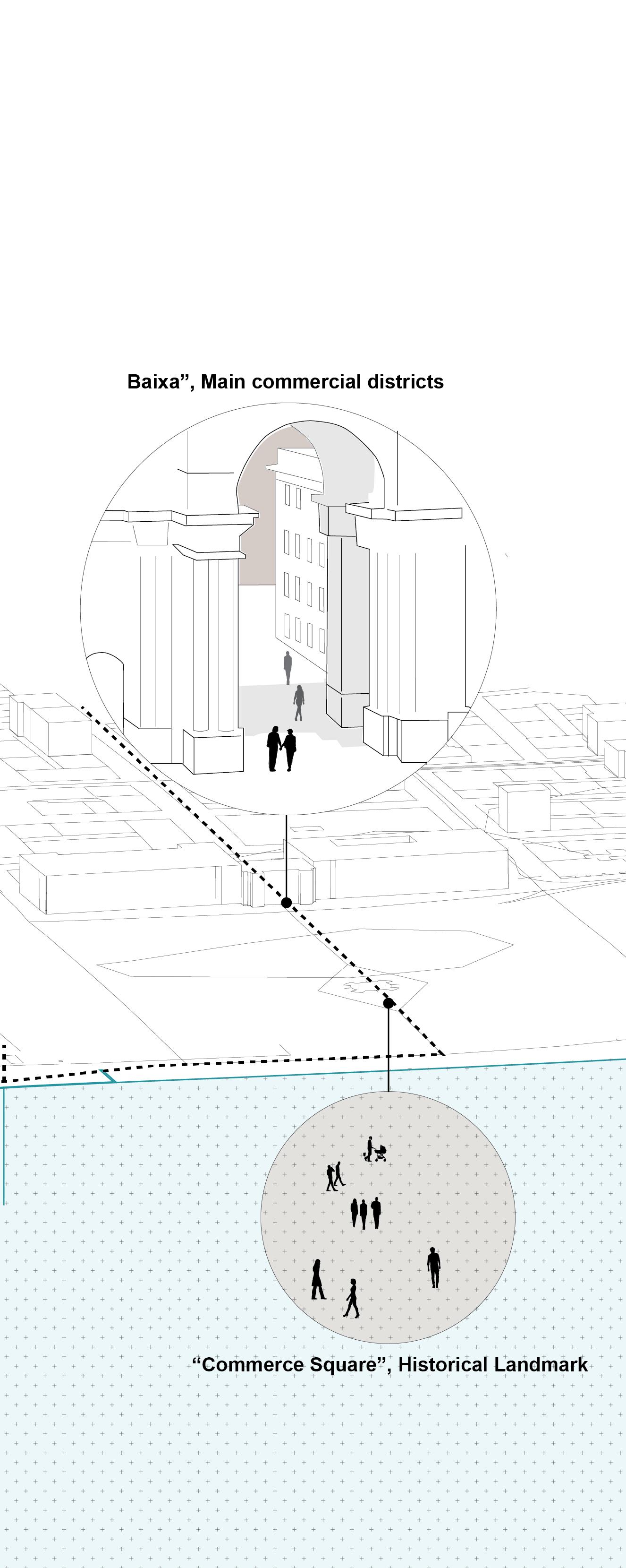 The site is located near the historical landmark, “Commerce square”, the main commercial districts, “Baixa”, and the higher-terrain residential districts. The residential building, renovated library, and urban landscape connects each of the distinct neighborhoods of the city and provides a new campus for Bairro Alto, a district where the site is situated on.