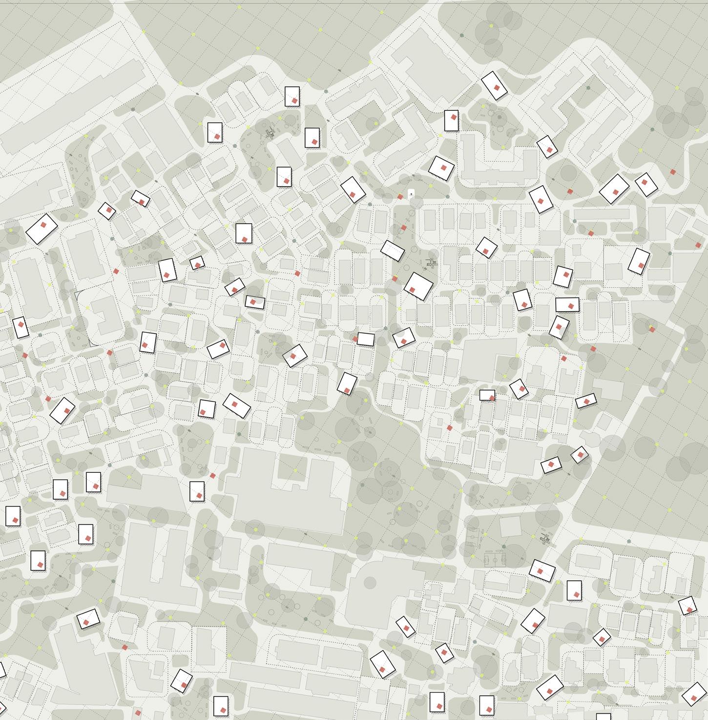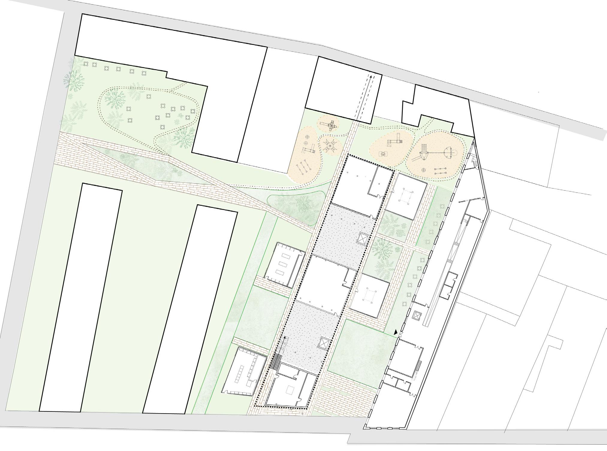 Ground floor plan- Clustered triple decker housings and mixed-use residential buildings
