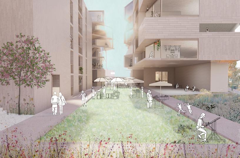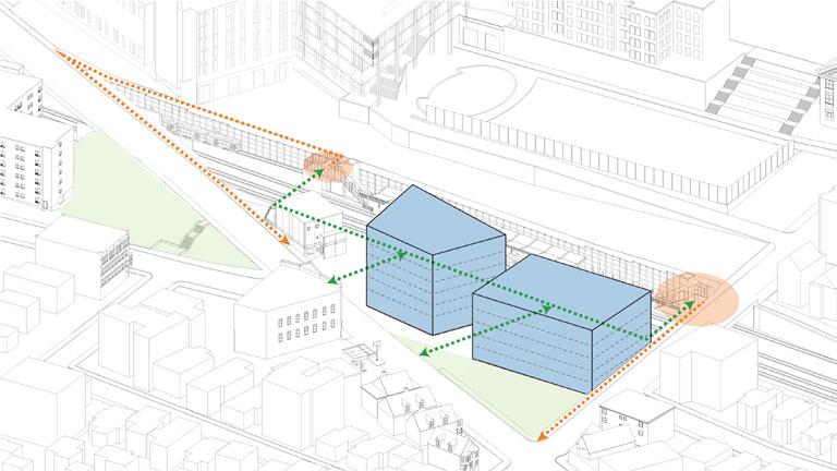 By extending the existing Pearl street to the site and dividing the triangular plot, Gilman square will be a small town, well merging with the existing residential areas and communities.