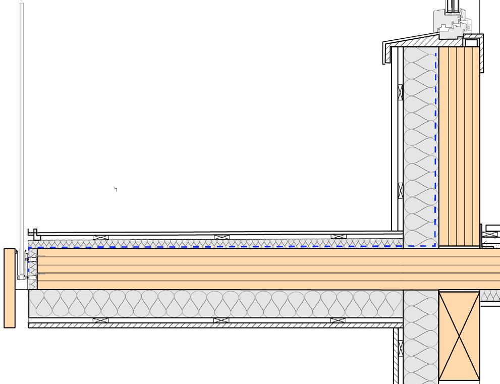 13 Exterior Wall: Wood Cladding panel 19.05mm Wood Stands 22mm ISOVER Stone Wool 101.6mm Waterproof Membranes CLT-5PLY 174.625mm R-Value: 32 Balcony Floor: Timber decking 25mm Wood Stands 22mm ISOVER Stone Wool 101.6mm Waterproof Membranes CLT-5PLY 174.625mm ISOVER Stone Wool 101.6mm Wood Stands Wood Cladding panel 19.05mm