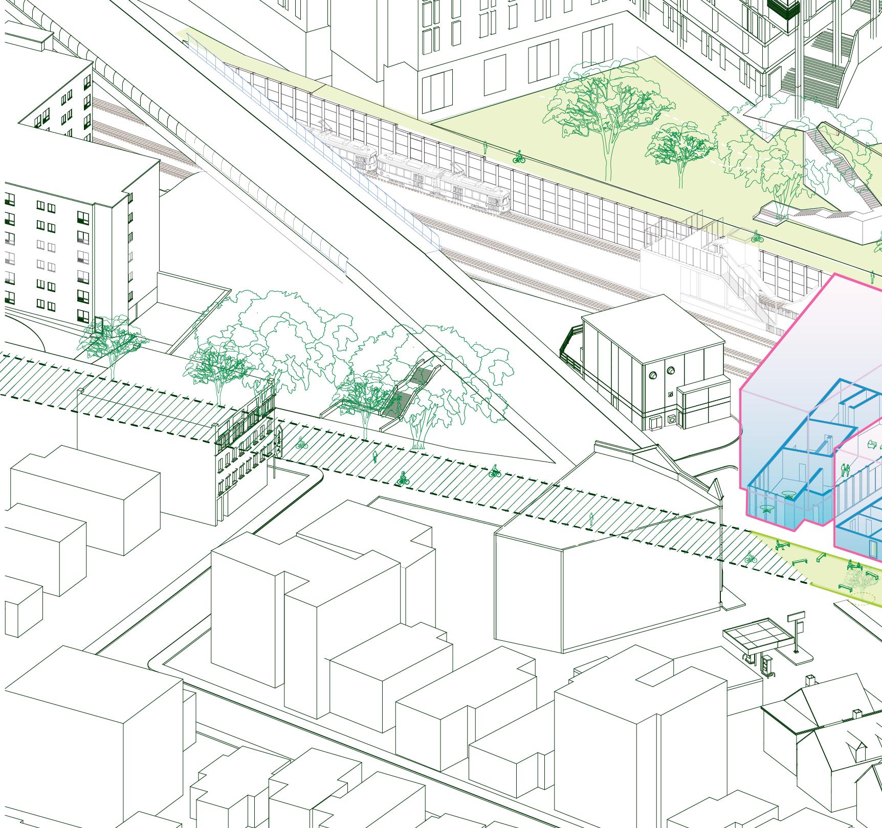 MBTA Green line extension project hugely impacted on the neighborhood of Boston, Somerville. As the needs of housing issues arise, Gilman square, a triangular-shaped vacant plot, has a potential of building housing blocks and mixed use programs for both bringing new residents and existing communities.
