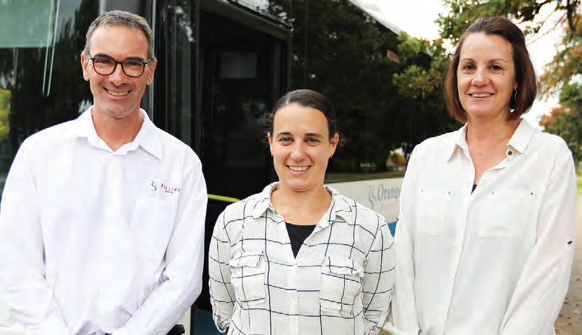 Orange Buslines Manager David Lee with Orange Family Support Service caseworkers Kristen Brooking and Maree Vaughan.