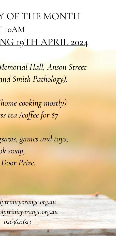 ORANGE CITY LIFE | APRIL 18 — 24, 2024 41 YOUR SPACE Have something of interest to share? reception@oclife.com.au