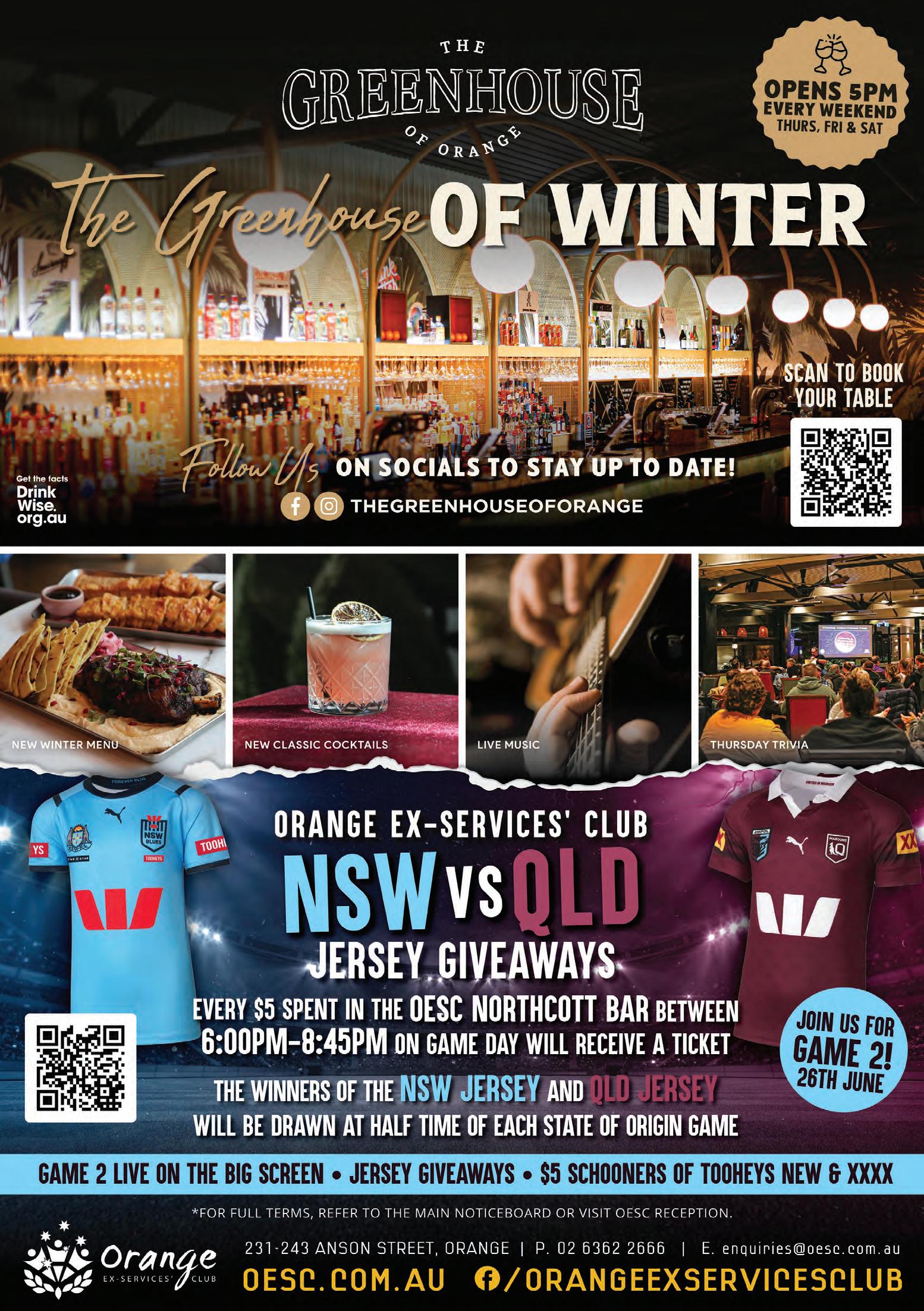 SPORTSCAM: Weekend AFL action... STYLE SHEET 02 6361 4155 enquiries@orangepropertyplus.com.au www.orangepropertyplus.com.au 1/202 Anson Street Orange Perhaps it’s time to make your next right move. So give us a call at OPM+ today! Are YOU happy with your current Managing Agent? Are YOUR calls being returned? Are YOU kept informed regarding your property? Are YOUR requests attended to? Are YOU made to feel that your business is important? WED TO SAT 4PM-8PM 0401 072 027 Check our Facebook for the Menu 37 William Street ORANGE Ph 6362 8611 P @ oCos DINE IN OR TAKEWAY Pizzas ~ Wings ~ Pasta ~ Chips ~ DimSim CoCo’s CAFE Delicious! catering available, eat take way. Portuguese chicken Poached Eggs with Avo smash and yogurt Berry muesli Black Bean Vegetable Burger with Sweet Potato Crisp Pumpkin Fetta Tart Sweet potato fish cake with seeded pumpkin fetta salad MEAL DEAL $50 2 Pizzas, Barramundi Bits & 1.25 litre Soft Drink COVER 38 Jonathan Roe C ten