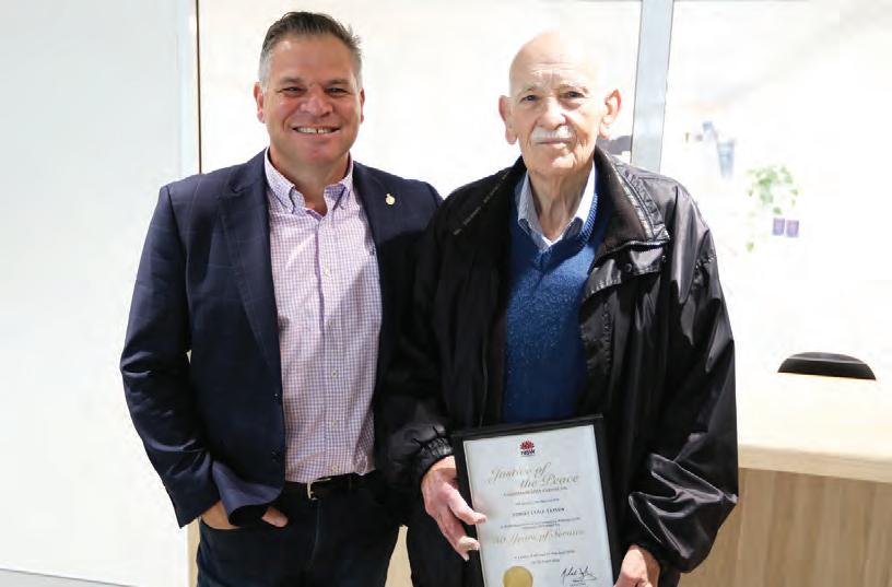 Member for Orange, Phil Donato, last week presented Robert Taylor a certificate of appreciation for his 50 years of service as a Justice of the Peace.