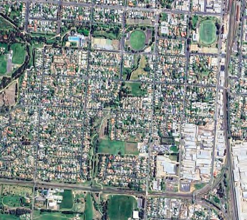 Dalton Street runs along the bottom of the photograph with the railway running through the centre and the showground can be seen on the right-hand side. In 1954, the Bletchington School was still three years away from being built and the area north of Margaret Street was mostly open paddocks and orchards.