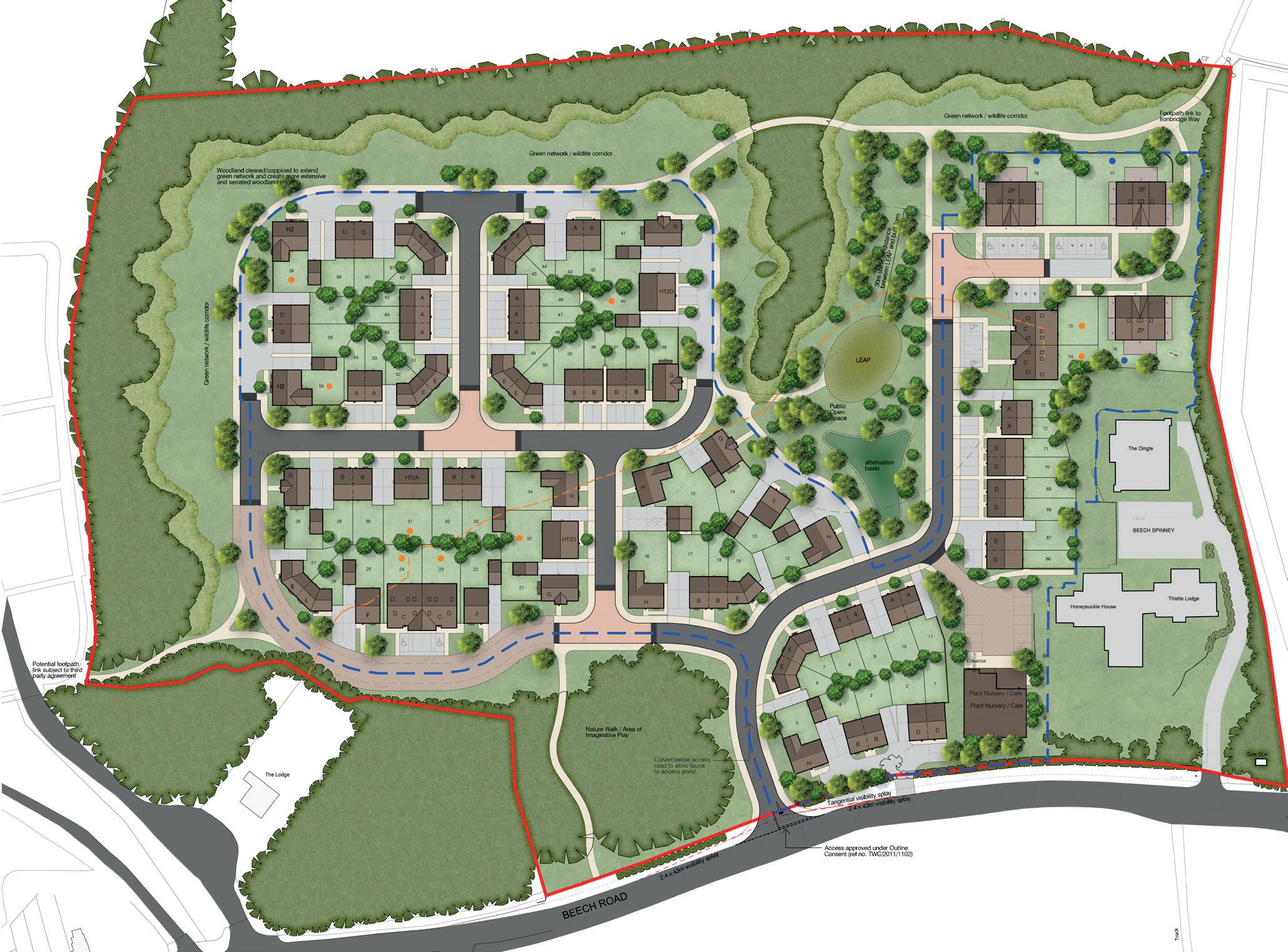 › Masterplan is underpinned by a strategic landscaping scheme with wildlife corridors, sustainable drainage and a neighbourhood park with a football pitch