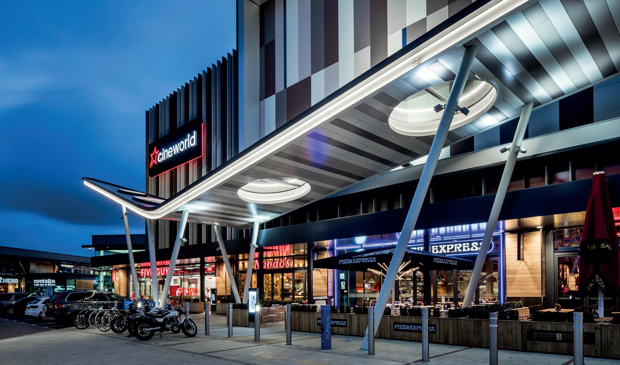 The Barcode is new leisure destination for British Land comprising an 11 screen cinema, 13 restaurant units and a sky bar. The Barcode is the result of the transformation of a dated bus interchange in Plymouth’s city centre. The development creates an exciting mix of leisure activities together with food offers, complementing the existing shopping facilities within Drake Circus and the surrounding area, and the 420 on-site parking spaces.