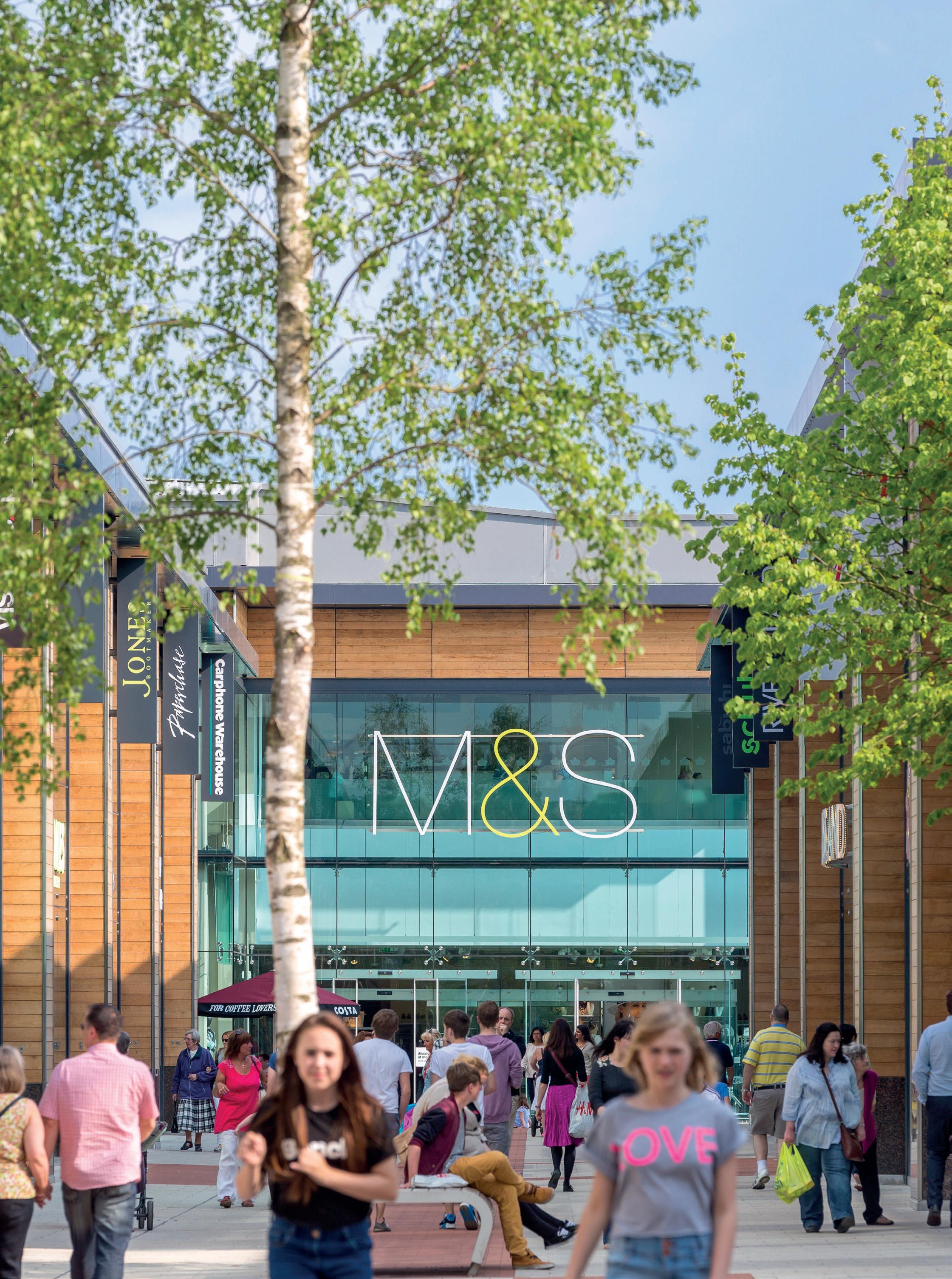 › The 300,000 sq ft, £84m retail development is anchored by Marks & Spencer who have taken a 60,000 sq ft store, and features 58 retail and leisure outlets including Next, H&M, River Island, Prezzo, Harvester and Chimichanga.