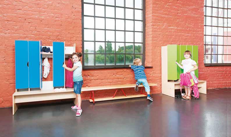 spogliatoio in legno “BRIO” (8 armadietti con ante colorate, ripiani e ganci)