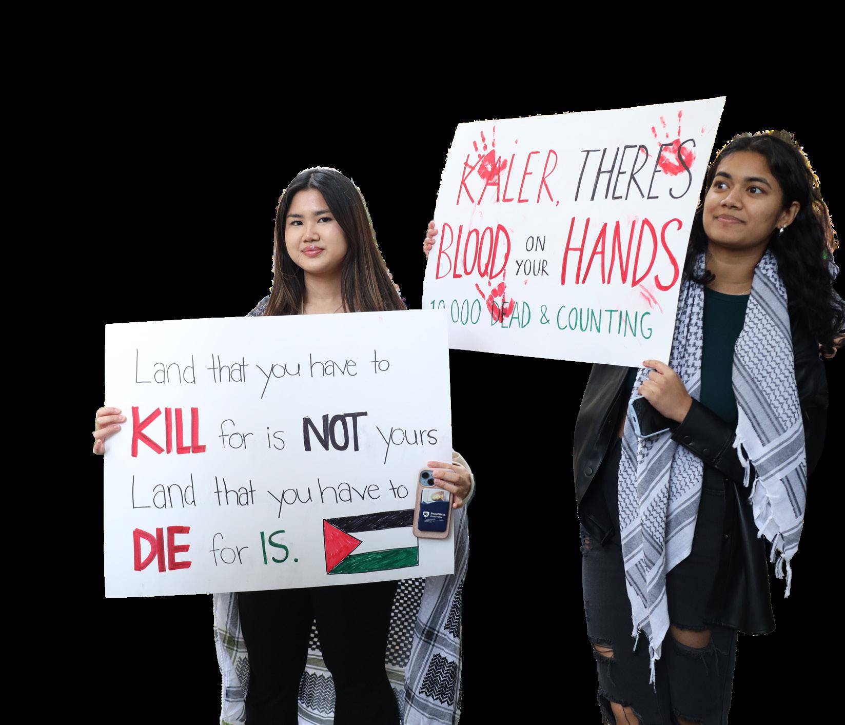 Later that same week, Kaler writes to the uni versity community to acknowledge “the level of terrorist violence by Hamas against Israel” and his commitment to “join with many in our com munity in a public denunciation of Hamas that will appear in this Sunday’s Plain Dealer.” On campus, many push back, saying that he did not properly acknowledge Palestinians.