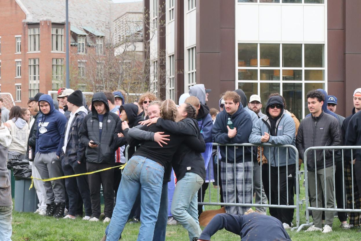 At first, the “die-in” in Tink was met with confusion or was largely ignored by passersby. However, as more families arrived for their tours, the protestors remained. Some parents were seemingly upset and complained to the staff at the admitted students tables, who reiterated their lack of control over the situation.