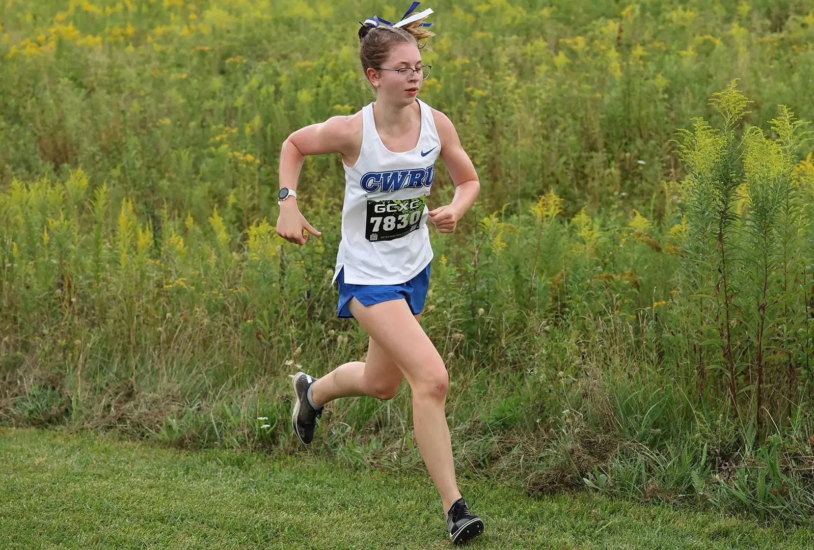 First-year Ciara Ledford finishes 36th at the Grizzly Invitational, helping her team secure fourth place in the first 6K of the season. Courtesy of Tim Phillis/CWRU Athletics