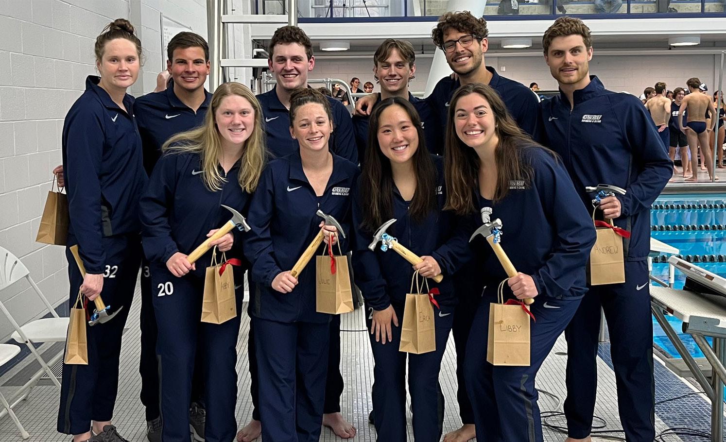 Although both the men’s and women’s swimming and diving teams lost to Kenyon College, the Spartans spent time honoring the graduating seniors. Courtesy of CWRU Athletics