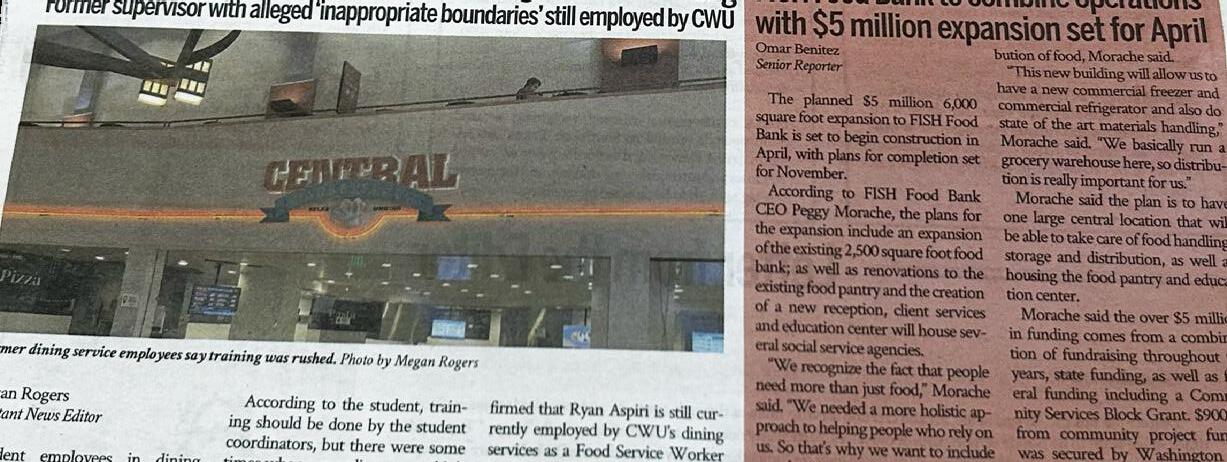 The Observer is CWU’s student-run campus newspaper. It’s published weekly throughout the academic year, with 700 copies distributed across campus and in town. Its website is updated daily. The Observer’s summer Orientation issue has a 1,000-print run. PULSE is an 80-page glossy lifestyle magazine published once per quarter, with 1,000 copies distributed on campus and in town. Check us out online at CWUObserver.com and CWUPULSEmagazine.com