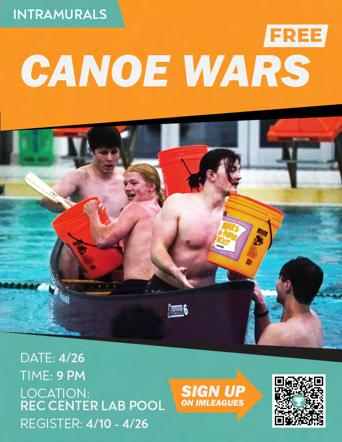 $$$ SIGN UP ON IMLE A GUES DATE: 00/00 TIME: 00:00 LOCATION: XXX REGISTER: 00/00 INTRAMURALS DATE: 5/3 DROP-IN: 6PM - 9PM LOCATION: REC ROOM 205/207 REGISTER: 4/17 - 5/3