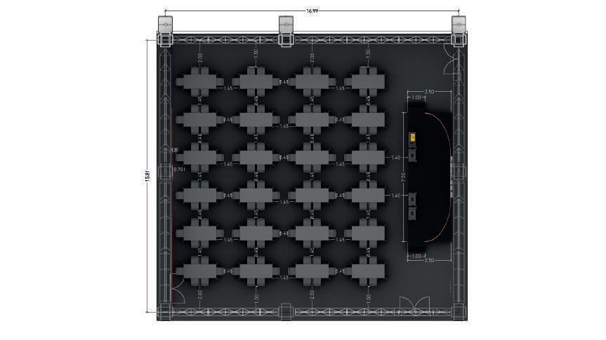 Sim embargo, el área de conferencias también abarco el diseño de una configuración específica de distribución para que se aforara a alrededor de 140 personas.