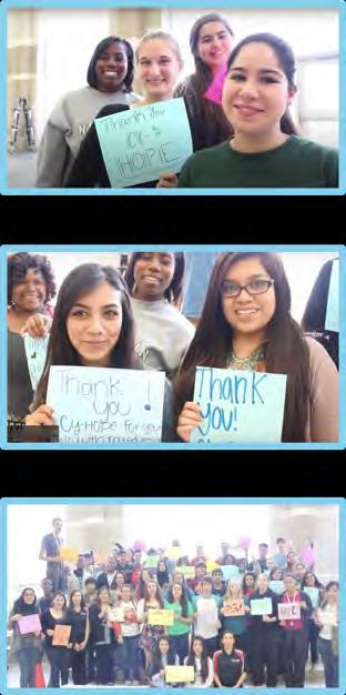 Cy-Hopebringshopetochildrenthroughmanydifferentprograms.Theseprograms providechildrenwithbasicneedssuchasfood,security,andencouragement. Underservedstudentscanparticipateinlifeexperienceslikesummercamp,playingona baseballteam,attendingbandcamp,enjoyingfieldtripsandotheractivities,orhavingthe fundingtocompleteDualCredit,APcourses,orcertificationtestinginhighschool.