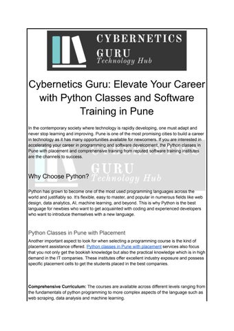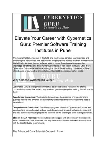 Cybernetics Guru is One of India’s leading and largest training provider for Data Science, AWS Certification Training, Python, Big Data and Hadoop Corporate training programs. It takes great pride in training the best industry professionals working at organizations such as HCL, Crisil-Standard and Poors Company,Wipro Infotech and Accenture.
