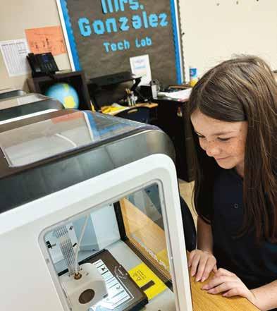 Use of technology terms, word processing, PowerPoint, spreadsheets with charts and graphs, publishing with Canva, master keyboarding, Chromebook skills, problem-solving, 3D printing, coding with Scratch and the engineering design process through Robotics.