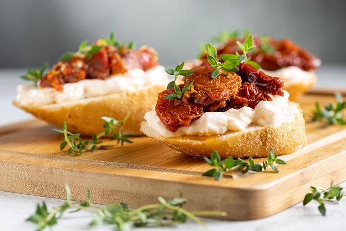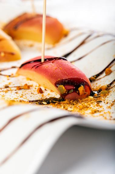 APPLE PROSCIUTTO, with blue cheese, dressed with sticky balsamic (GF) GRILLED HALLOUMI, cranberries & dukkha on grissini (V)(GF)