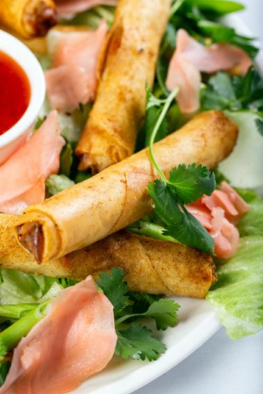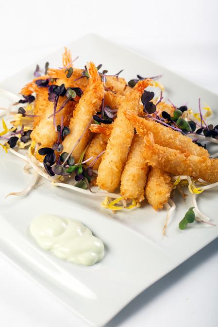 DUCK SPRING ROLLS, orange & Thai dressing (DF) COCONUT PRAWNS, with wasabi mayo dressing (DF)