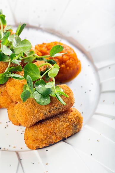 GOAT CHEESE, with vegetables on gluten free crispbread (V)(GF) ARANCINI, rice balls with roast chicken, mushroom & garlic aioli