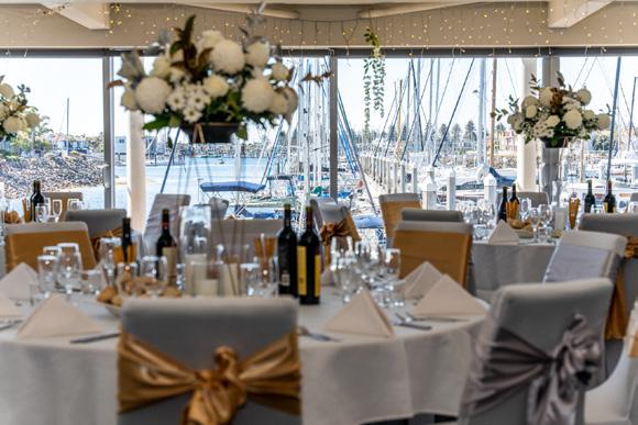 World class views overlooking the picturesque marina, Table linen with a choice of white or black tablecloths and napkins, Wedding cake table and cake knife, Dance floor / Corporate function display floor, Lectern & Microphone, Guest list displayed on easel, Complimentary on-site car parking
