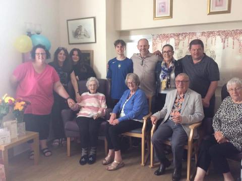 Yma gwelwn Mair yn dathlu efo rhai o breswylwyr eraill Plas Ogwen ac yn arddangos ei cherdyn penblwydd gan y brenin a ’ r frenhines.